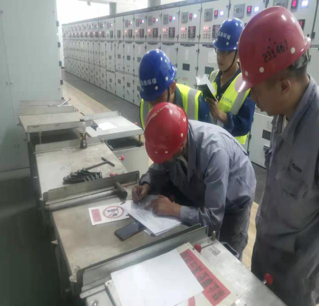 360燒結(jié)脫硫我方人員正在同甲方代表做水電交接