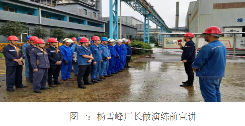 7月26日,應(yīng)急演練開始,興欣釩廠長楊雪峰協(xié)同調(diào)度科、運(yùn)行車間、安全環(huán)?茀⒓,威遠(yuǎn)藍(lán)鼎副總經(jīng)理黃安軍、生產(chǎn)副部長楊平、陳威、宋雨鵬、水處理生產(chǎn)檢修人員共計(jì)30人參加了本次演練。